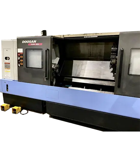 The CNC turning center also uses live tooling with a powered rotary tool turret, dual spindles, and Y-Axis.